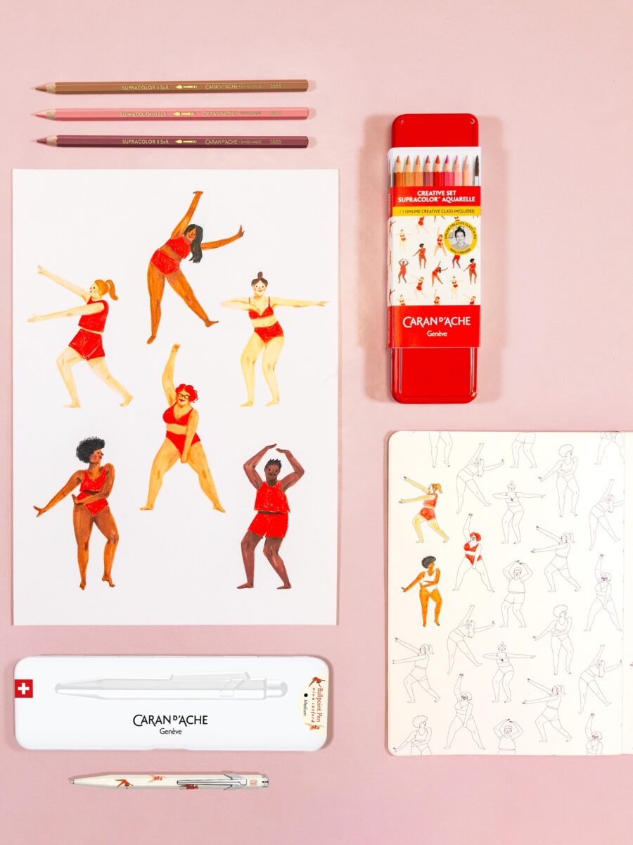 Nowa kolekcja celebruje kreatywność, różnorodność i body positivity. Charakterystyczne postacie Niny Cosford pokazują różne sylwetki i ruch, promując inkluzywne, radosne podejście do twórczości.