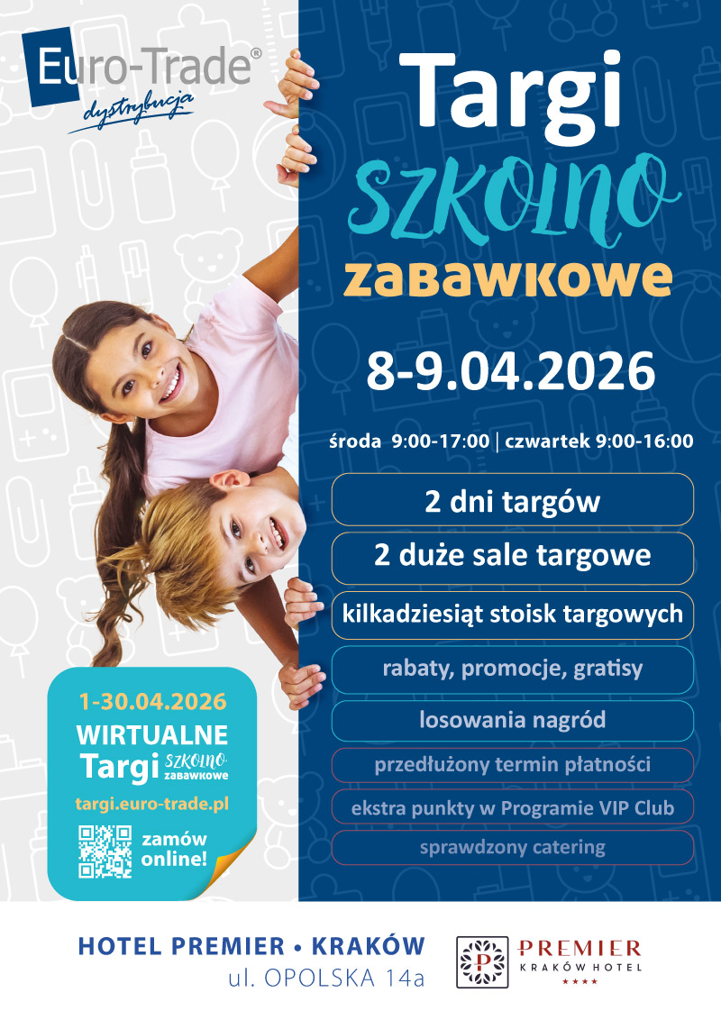 W dniach 8–9 kwietnia 2026 r. w Krakowie odbędą się targi szkolno-zabawkowe organizowane przez Euro-Trade. Wydarzenie skierowane jest do branży zabawek, artykułów szkolnych i papierniczych.