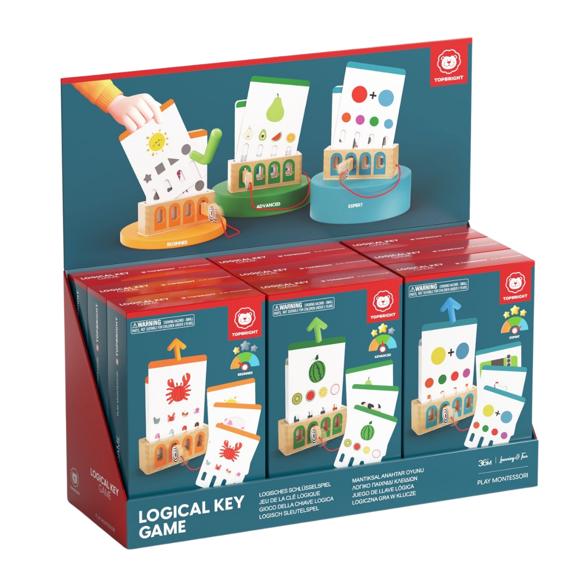 Topbright Logiczne Łamigłówki to seria interaktywnych gier edukacyjnych które rozwijają myślenie logiczne, analizę i koncentrację. Dzięki mechanizmowi kluczyka dzieci samodzielnie sprawdzają swoje odpowiedzi ucząc się przez działanie. Seria obejmuje trzy poziomy trudności: Podstawowy, Zaawansowany i Ekspert — idealne do stopniowego zwiększania wyzwań. Display 9 szt. w mix poziomów.