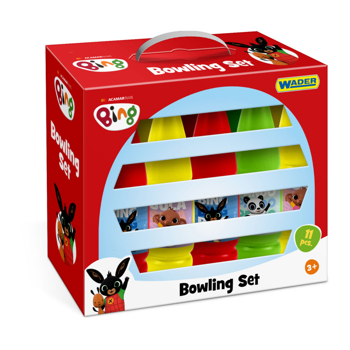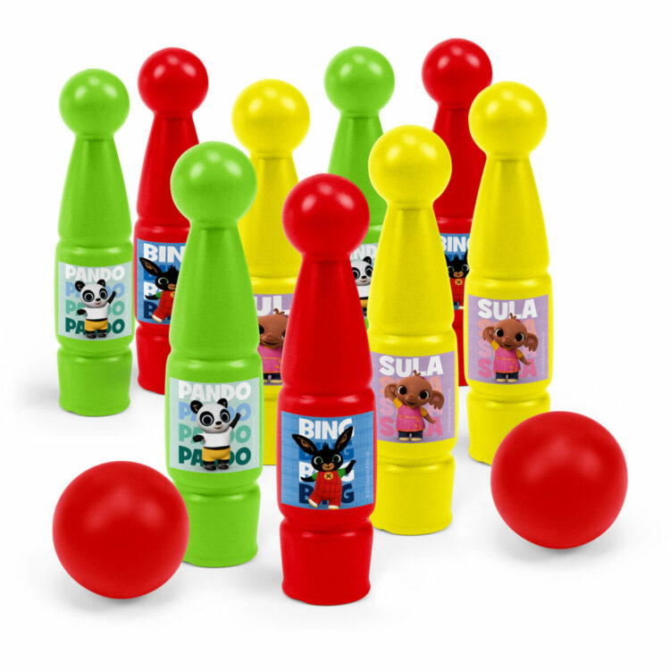 Kręgle z motywem bajki Bing to zestaw który zachęca dzieci do aktywnej zabawy z dala od ekranów. W zestawie 9 kolorowych kręgli (czerwone, żółte, zielone) z wizerunkami Binga, Suli i Pando, 2 piłeczki oraz arkusz naklejek do samodzielnego ozdabiania. Całość w estetycznym kartonowym opakowaniu z uchwytem do przenoszenia. Sprawdza się w domu, ogrodzie i podczas spotkań z rówieśnikami.
